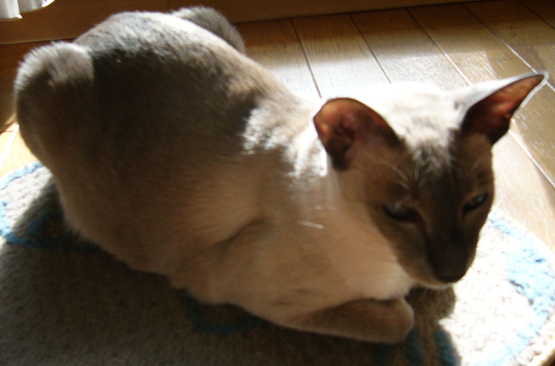 この香箱座りはリラックスした時だけ、なぜなら、即座に他の動作に移れないからです。香箱座りのときは、目は半開きでトロンとして、耳もゆったりと上に向かって立っています。