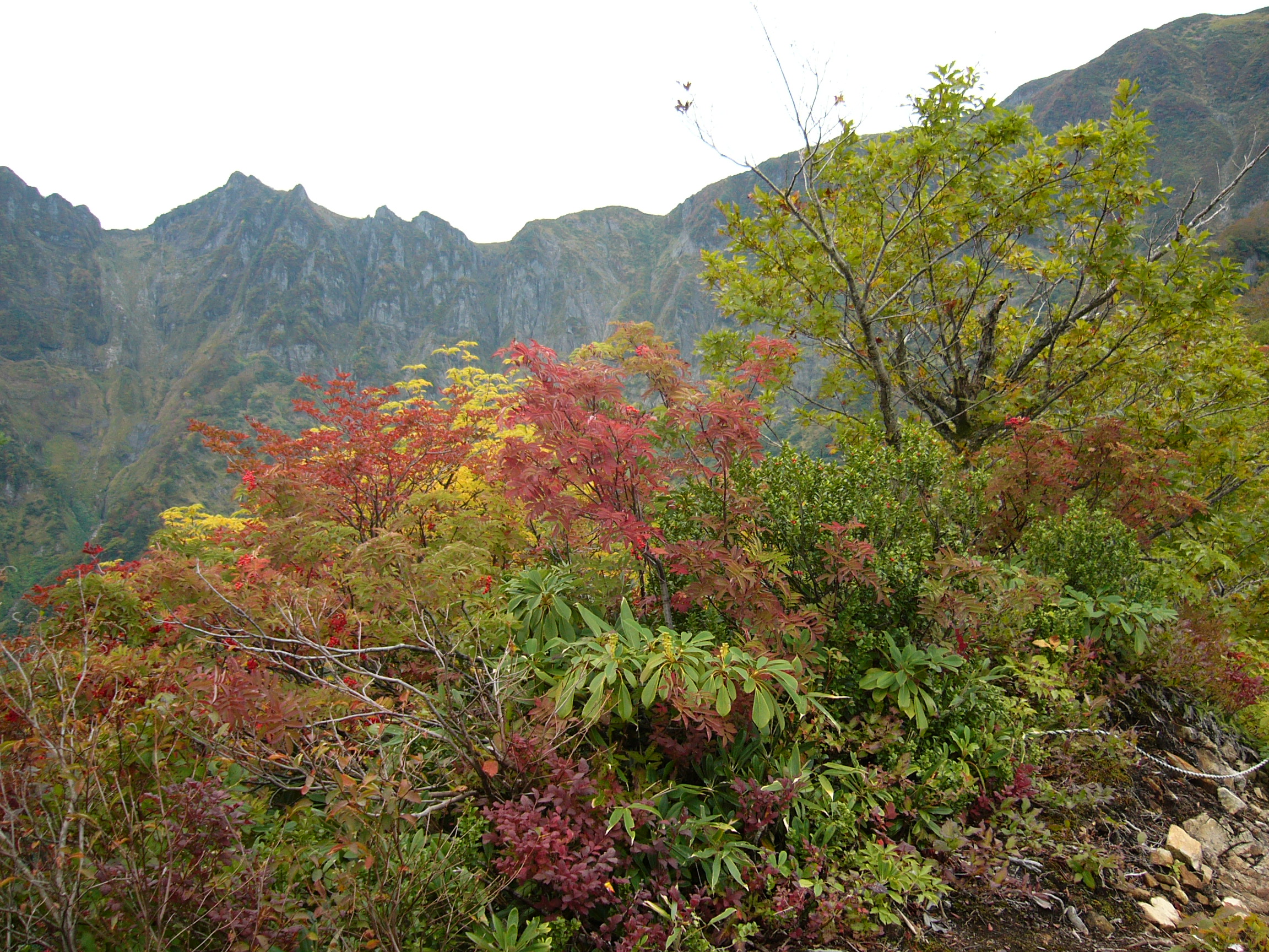 浅草岳山頂付近の紅葉は、すでに終わっていましたが「鬼ヶ面眺め」付近では、七竈などが美しく紅葉していました。