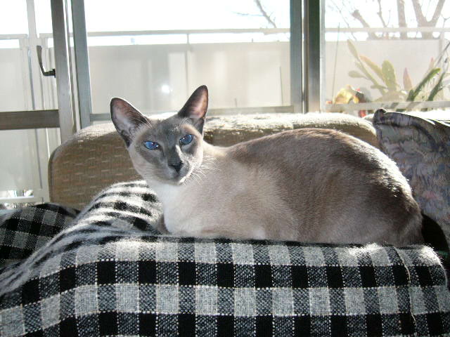 にれんののっているチェック柄の布の下は、ダンボール箱で作った炬燵です。にれんの重さで潰れそうです。