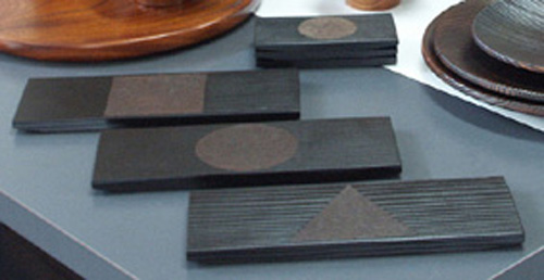 工程は、木地を作り、油煙で黒く染めて生漆を摺りこみ、その途中で、和紙を糊漆で貼ったそうです。