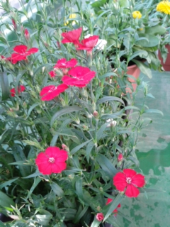 ベランダに鉢植えした撫子です。昨年の秋に紅白で2株植えました。冬の間は、小さな株のままで花もほとんど咲きませんでしたが、春のぽかぽか陽気になったから、ぐんぐん成長し出して蕾がたくさんついて、花もたくさん咲きだしました。白色はまだほとんどか蕾ですが、これから花を咲かせそうで楽しみです。