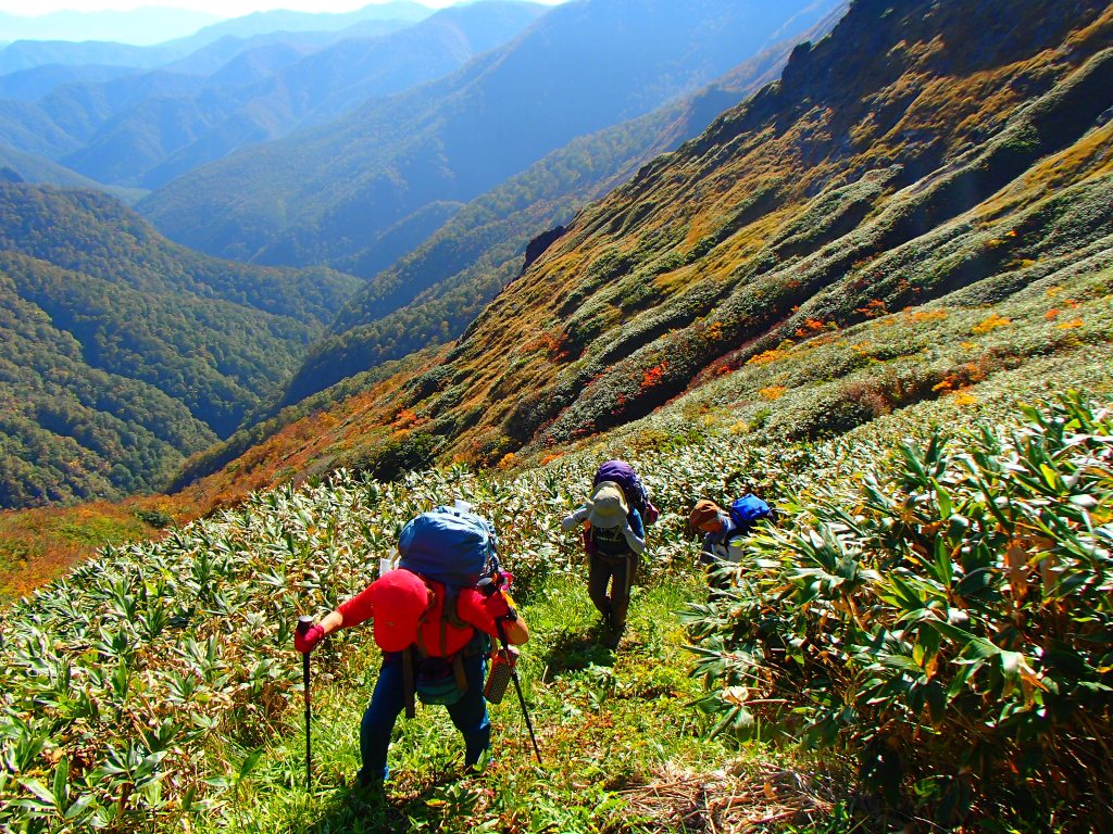 翌日は、万太郎山に登って吾策新道を下りましたが、このルートも登山者は少なく紅葉が美しい素晴らしい登山道でした。