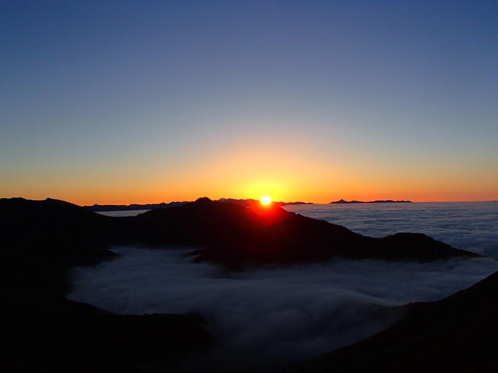 深夜、起きて見ると、空には星が輝き、周囲の山々は綿菓子のような雲海で覆われた幻想的な景色を見ることできました。