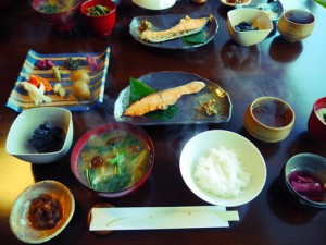 朝食、自家精米のご飯がこれまた美味しいのです。デザートは、ヨーグルトの上に、数種類のお手製シャーベット、食事だけを楽しみに行っても良い位の食卓なのです。