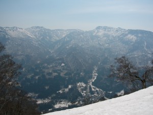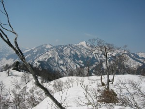 結果は、布岩山1500mまでしか登れなかったことになりましたが、そこは、広々とした台地でクマの足跡もチラホラ、眼下には秋山郷小赤沢集落、定宿の民宿「えーのかみ」も見えて、素敵な眺めでした。