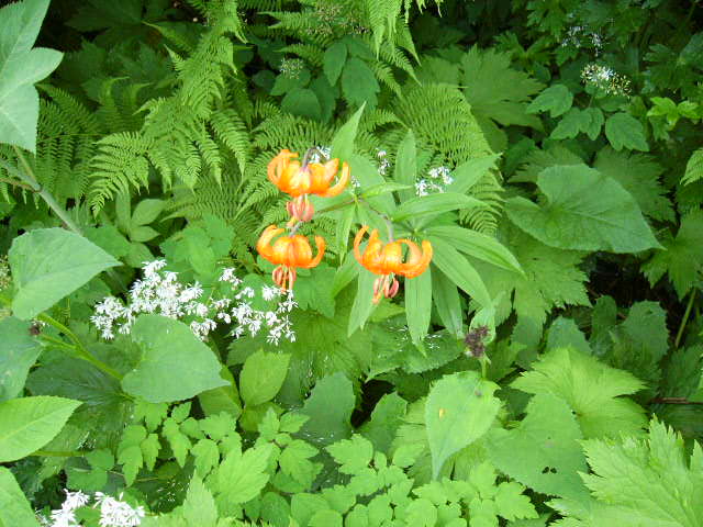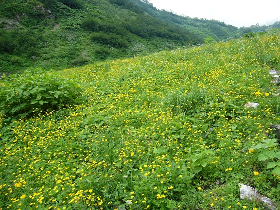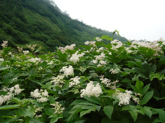小屋付近や大出原では遅くまで雪渓が残るため、9月中旬まで高山植物の群生を見ることができます。今回は、 温泉小屋に近づくに従って、登山道の両側は、ワレモコウ、ユリ、シナノキンバイ、イタドリ、ミヤマトリカブトなどの花で埋めつくされ、自然の美しさを満喫することができました。