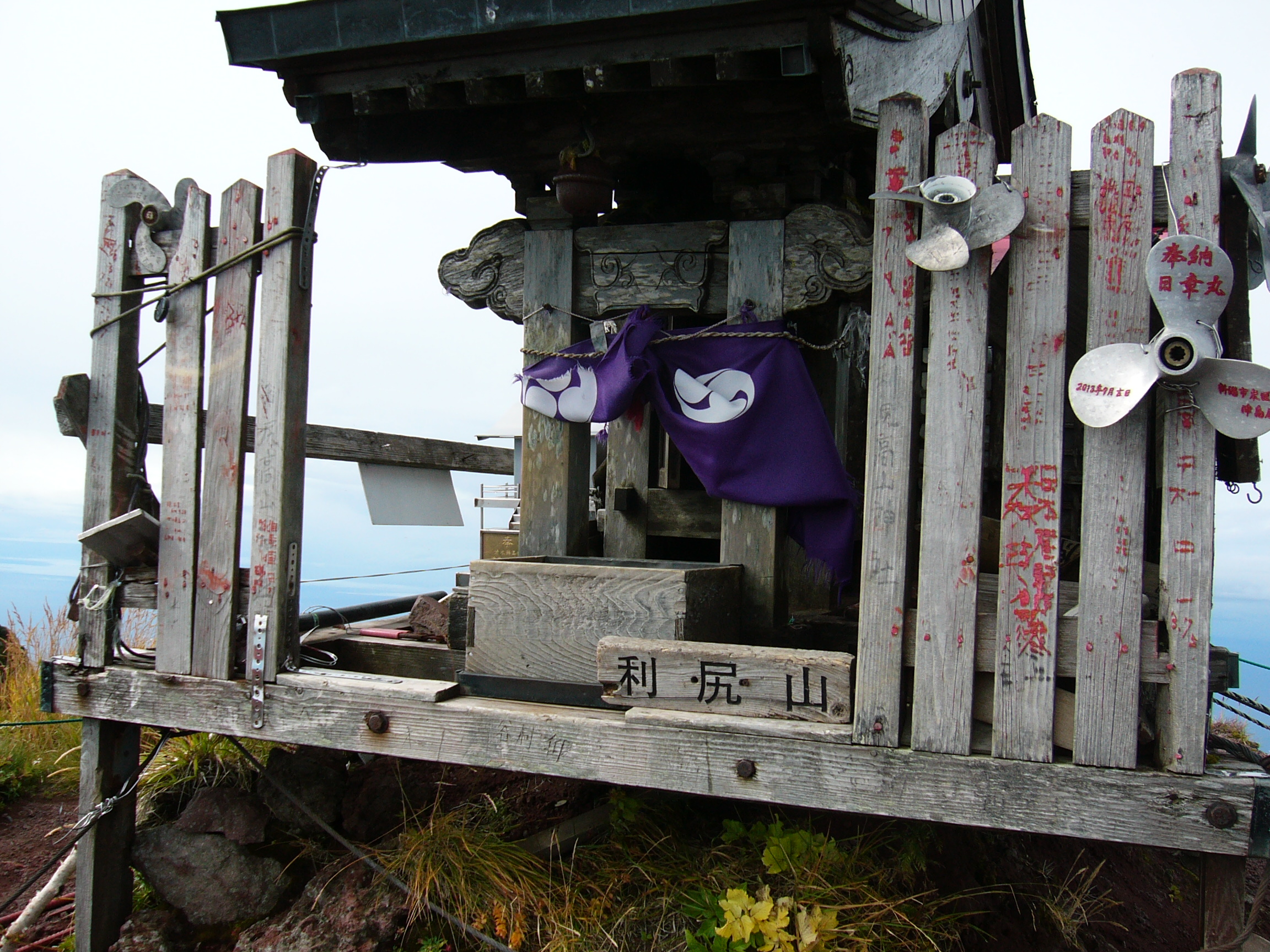 頂上には三角点と小さな祠があり、北峰とも呼ばれています。稚内方面から礼文島方面に向けて通り過ぎるさわやかな風が心地よく感じられました。昨年は、9月中旬に初冠雪だったとか。