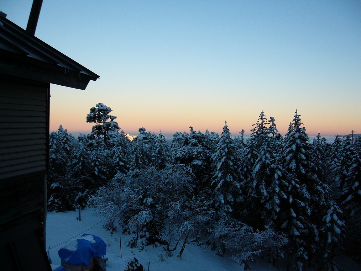 北横岳ヒュッテから見た夕暮れ。茜色の空が美しい。