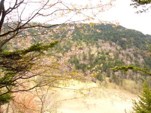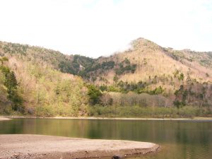 爽快に歩いて辿り着くのが切込湖です。山桜が咲いていました。