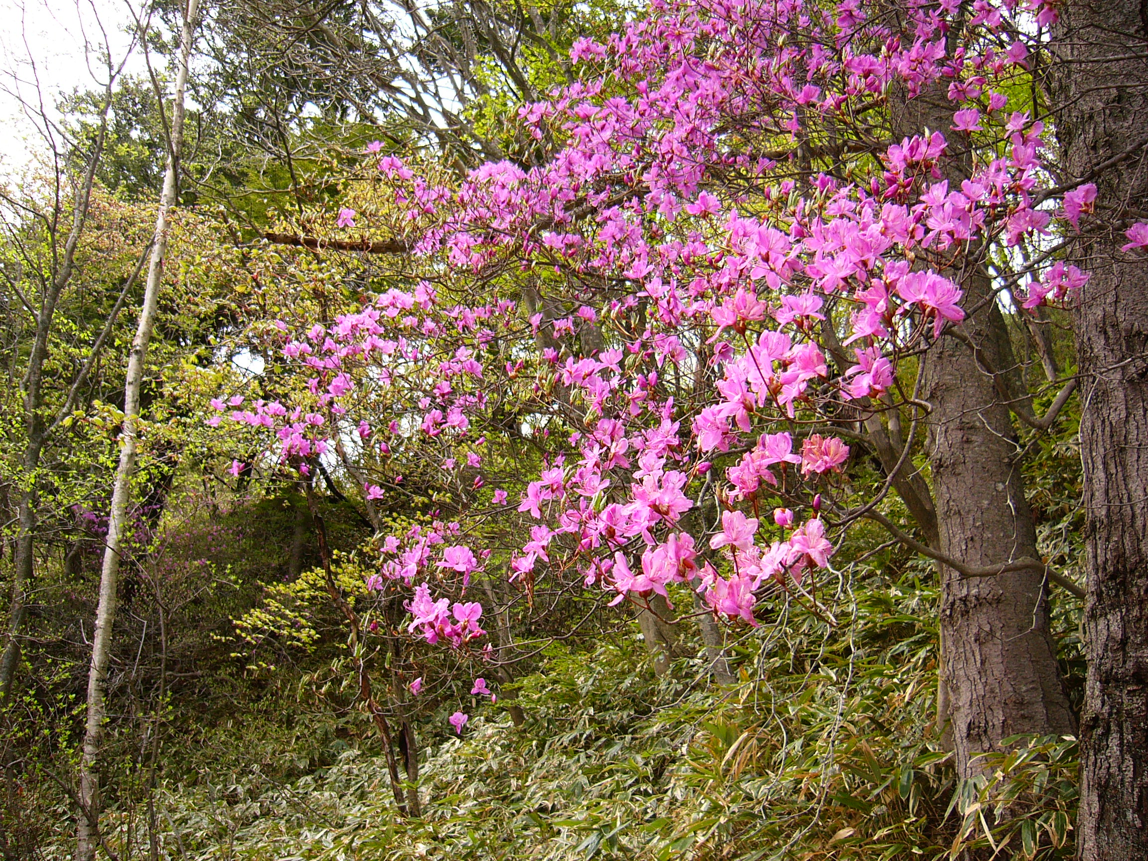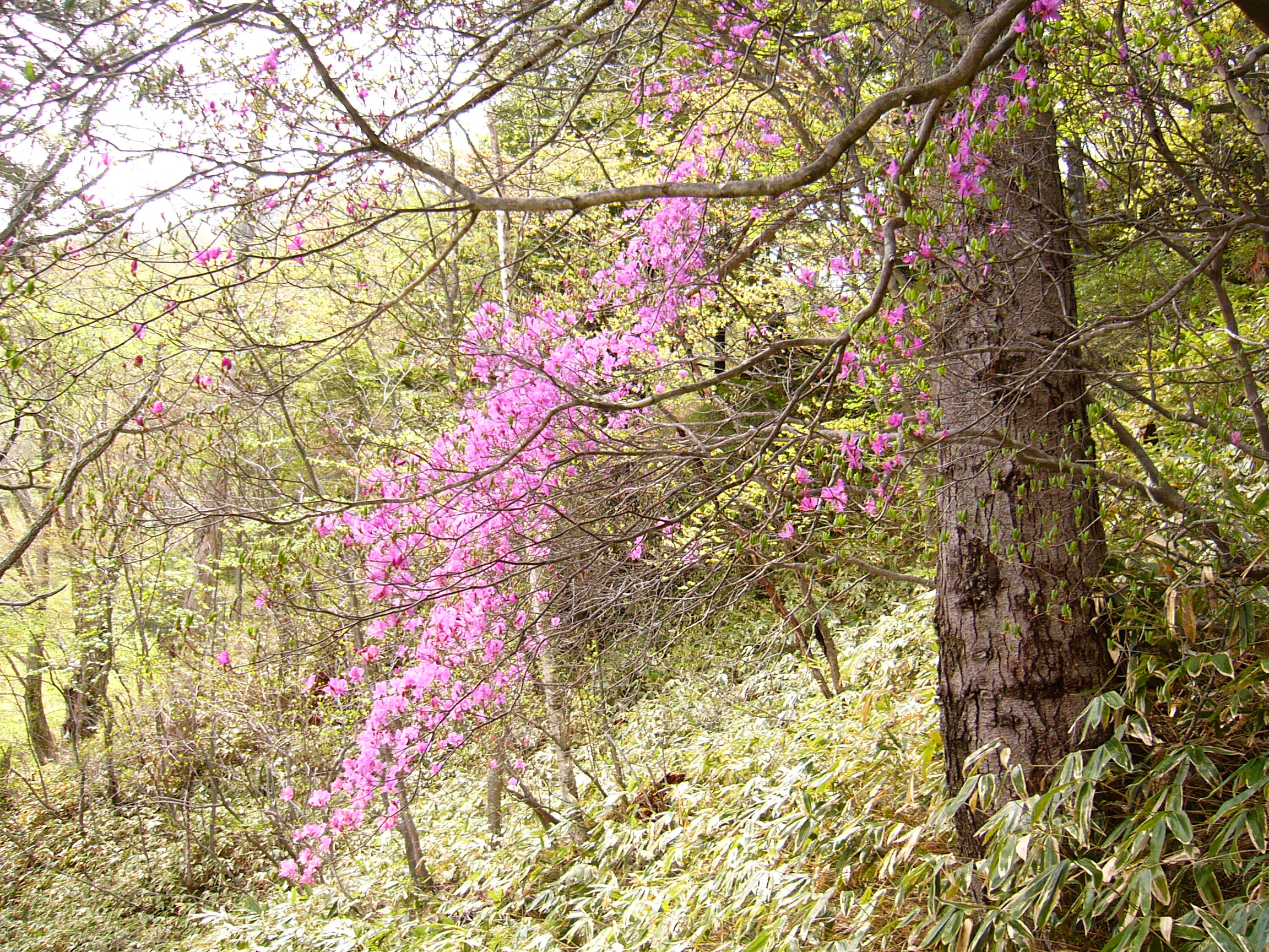朱色のヤマツツジ,桃色のトウゴクミツバツツジ,白色のシロヤシオが映えていました。