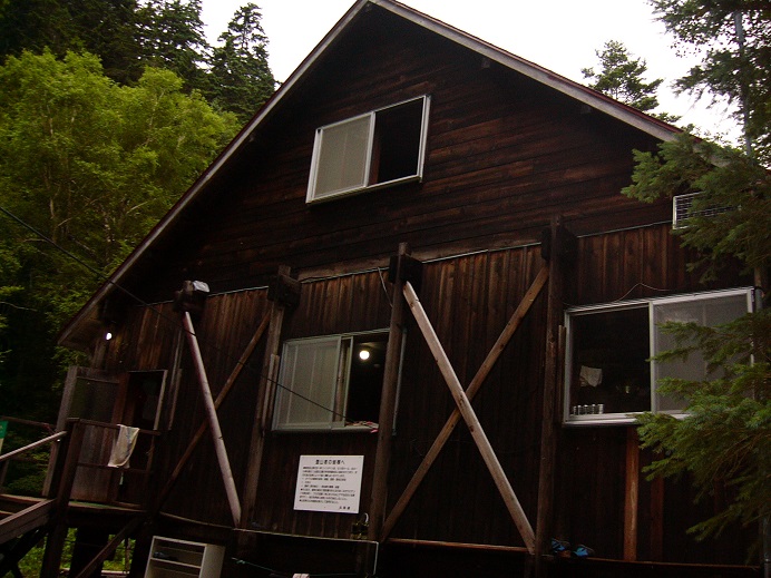 27日(曇り&晴):とよぬか山荘発7:00–(シャトルバス)–7:50第2ゲート(標高530m)8:00–奥幌尻橋–10:40北海道電力取水施設(おにぎりのブランチ)(虫除けに蚊取線香の煙)–渡渉開始地点–幌尻山荘着(標高1152.4m)13:45