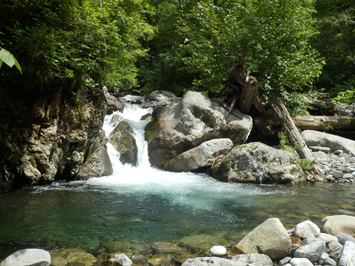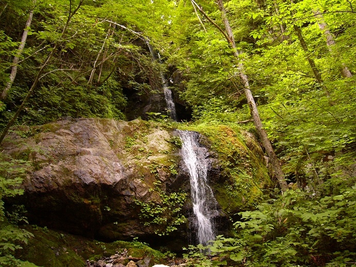気温は、24~25度程度。暑くもなく深緑の中、快適な林道歩き、涼やかに流れ落ちる滝の水でした。
