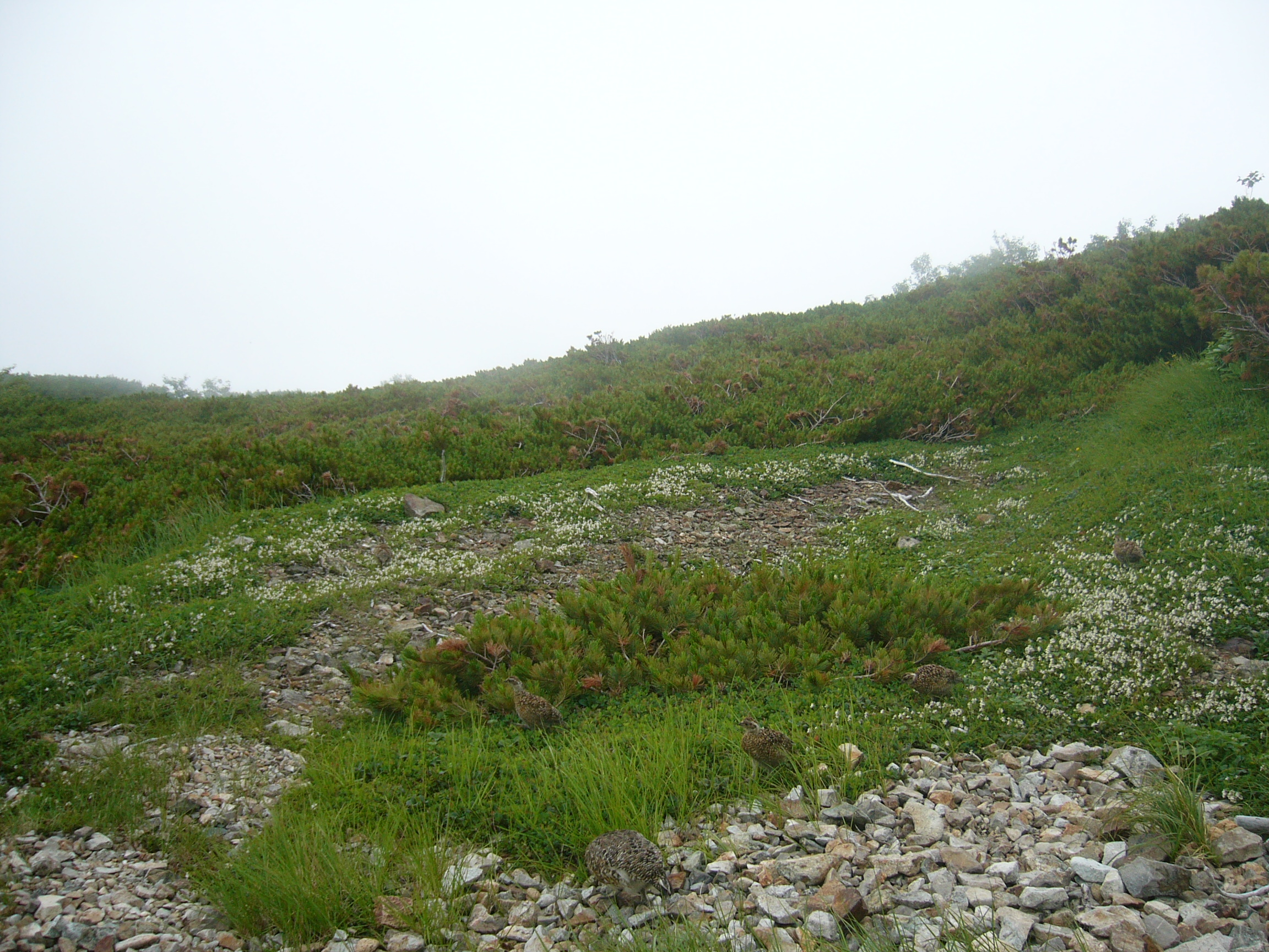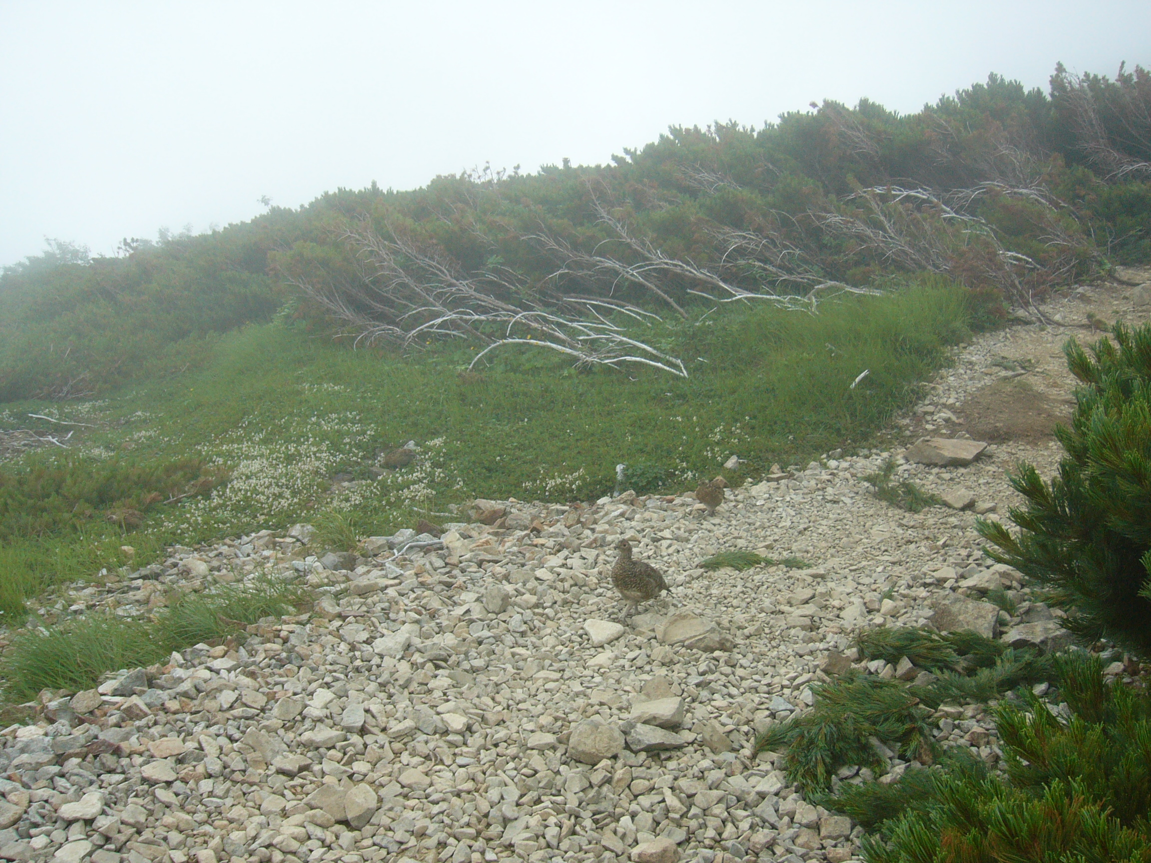 白馬大池から白馬岳へ向かう。11時頃7羽の雷鳥に出会う