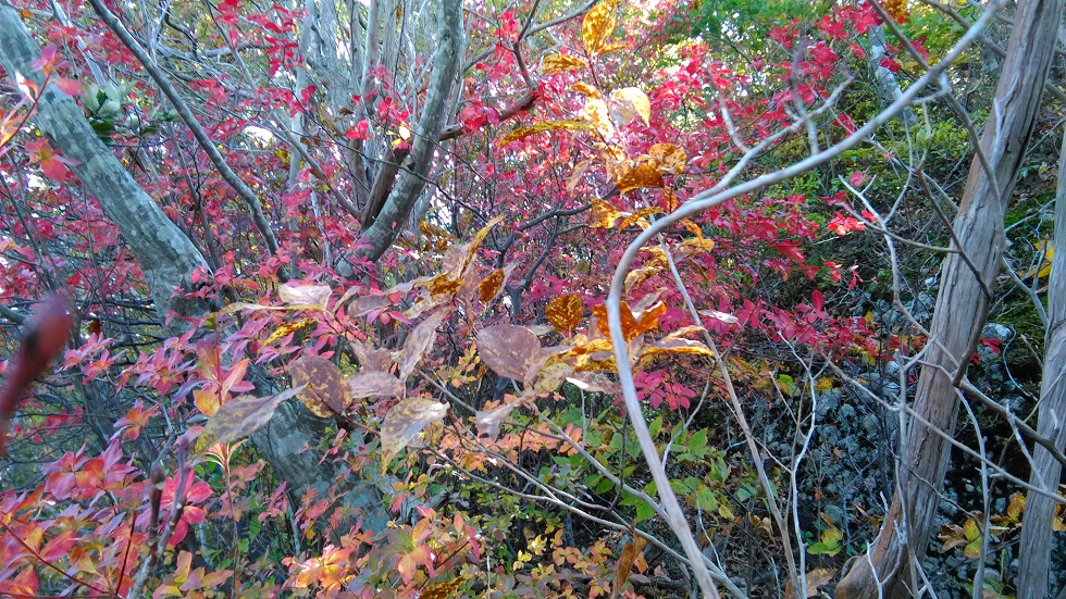 山頂付近のヤマモミジとドウダンツツジの紅葉がきれい。変化に富んだ楽しい山。