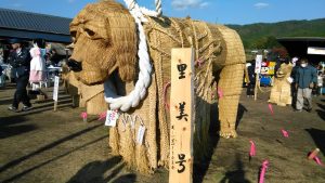 かかし祭りコンテストのグランプリは、犬の「里美号」賞金10万円とか。