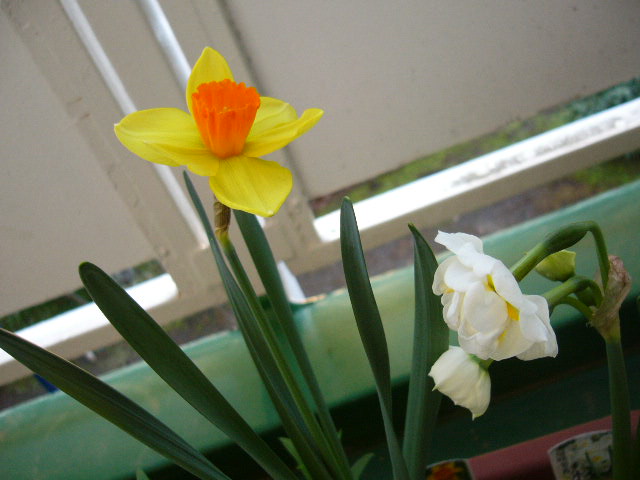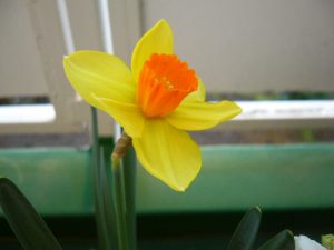 冬に植えた水仙が開花しました。えんどうの花も咲いて春です。
