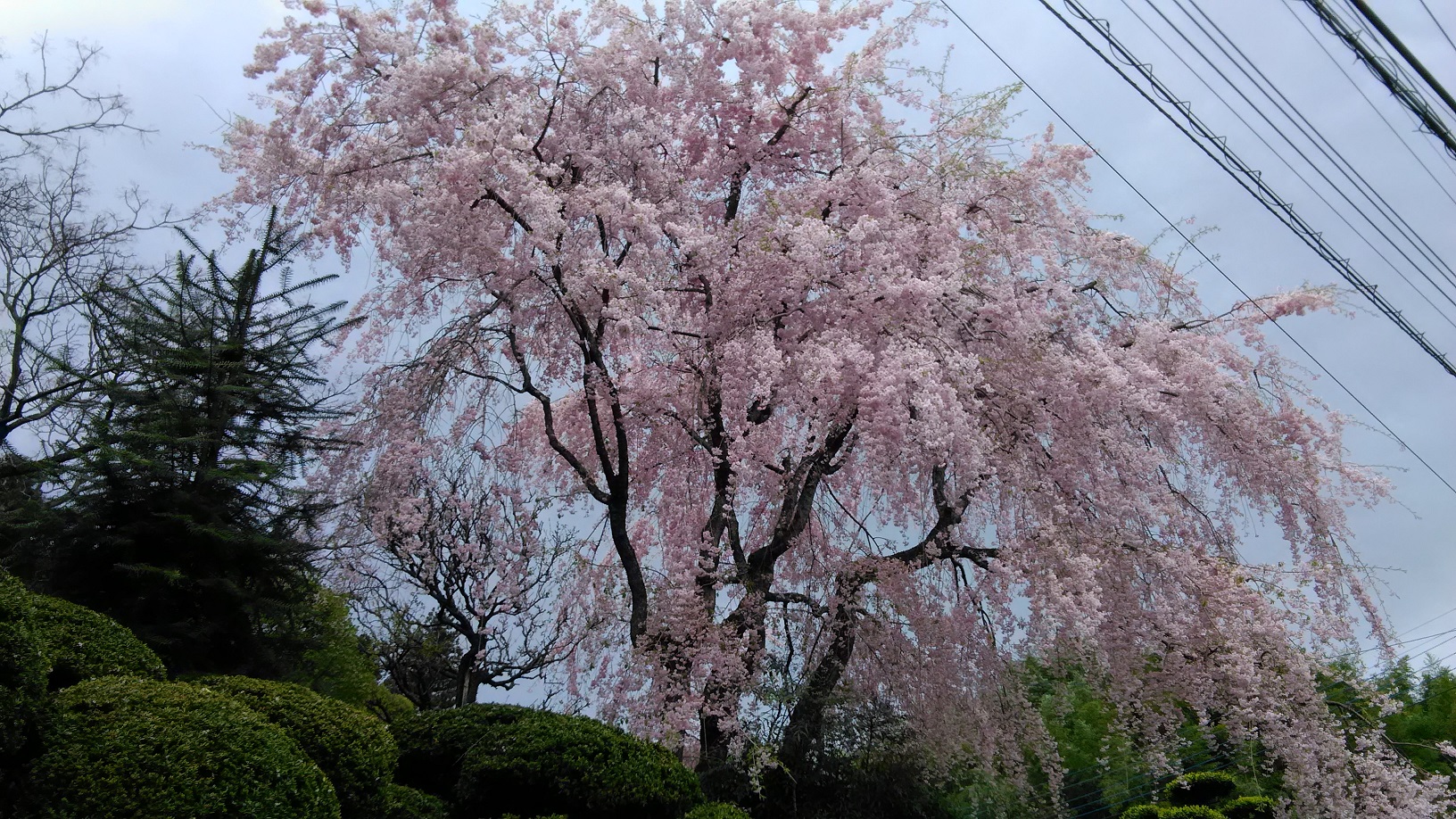 ちょうど見ごろの薄桃色の枝垂桜、黄色い花が鮮やかな山吹、紫色のミツバツツジが、
