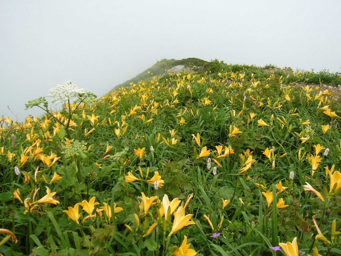 観光新道を登り、砂防新道を下りました。登山道周辺は、ニッコウキスゲ、ヒメサユリ、クルマユリなどが真っ盛りでした。