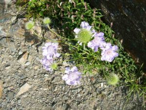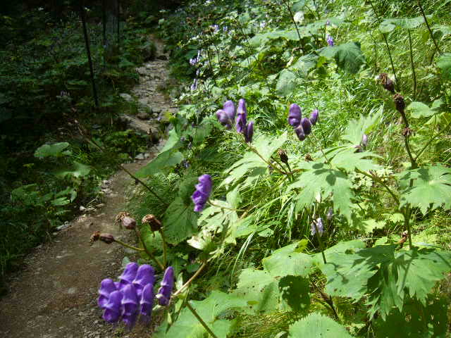 千枚岳から悪沢岳の手前まで、マツムシソウやトリカブトなどが群生し、紫色の花で彩られていました。