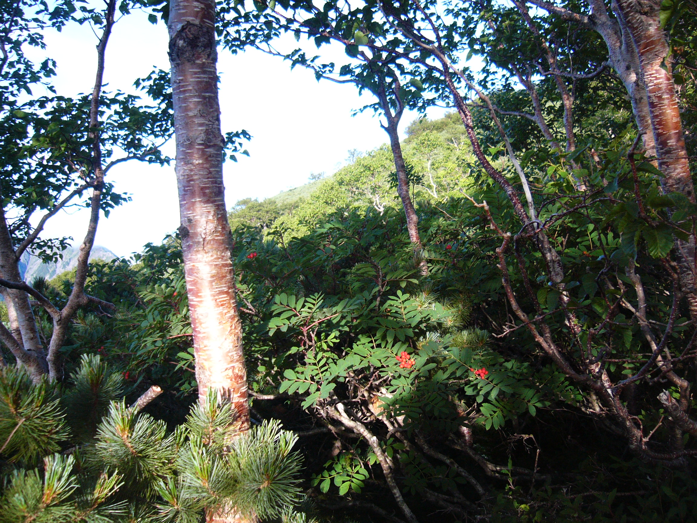 椹島ロッジ(1,123m)が登山口、登りはじめて清水平(1,810m)を過ぎたあたりからシラビソの立ち並ぶ美しい林の中を歩くことが出来ました。