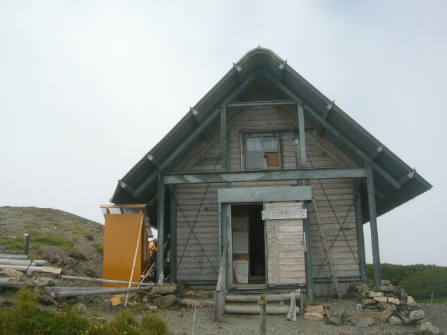 荒川中岳避難小屋と中岳、このあたりからすっかり雲に覆われ、眺望はなくなってしまいました。