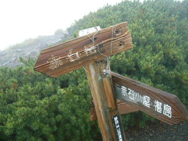前岳付近から雨が降り出して赤石小屋まで断続的にどしゃぶり、富士見平で休憩して、