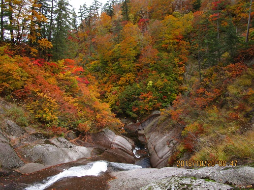 昨年よりも1週間程紅葉の始まりが遅かったようです。 晴天の2日間、紅葉と深山幽谷を楽しんできました。ガイドは、両日とも宮野さん(森吉山ネイチャー協会)。