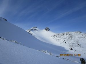 ここから山頂に直登し、肩から山頂に登登ったのですが、雪の状態が良く容易に登れました。