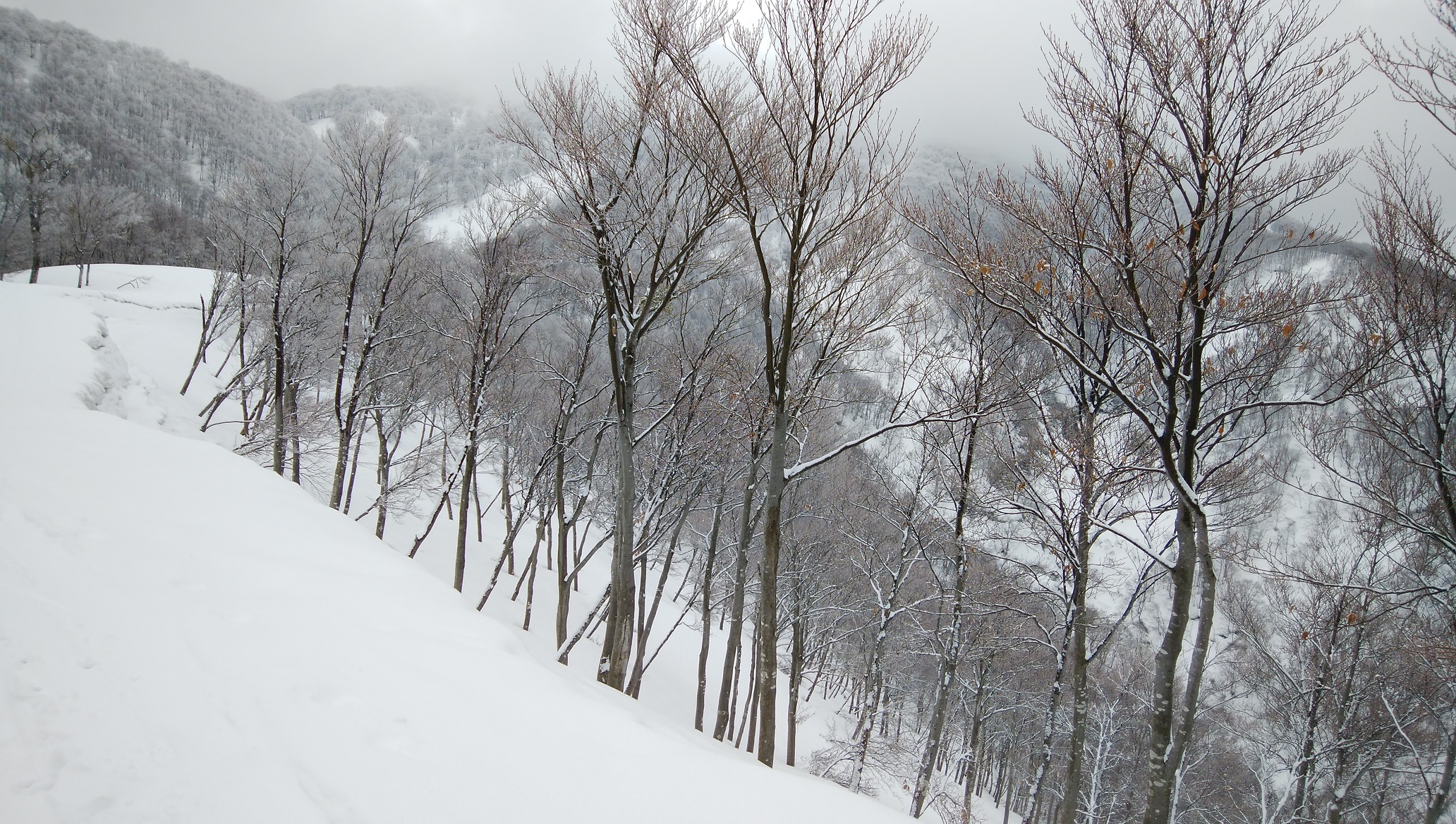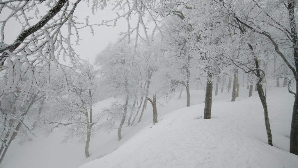 硬く締まった雪の上に前夜の降雪で新雪がふんわり、その上をワカンで歩くのはとても楽しいものでした。