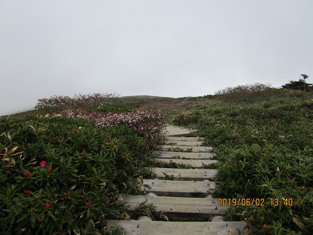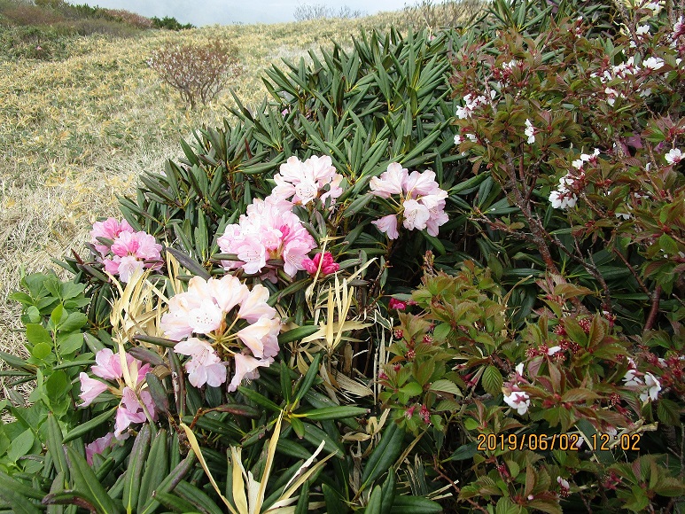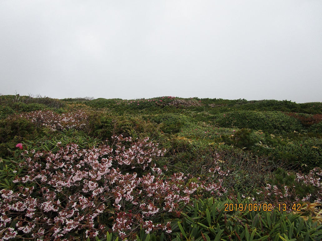 平標山から引き返すことも念頭において山頂へ、登るに連れてあたり一面、石楠花と峰桜の群落が見事になってきました。