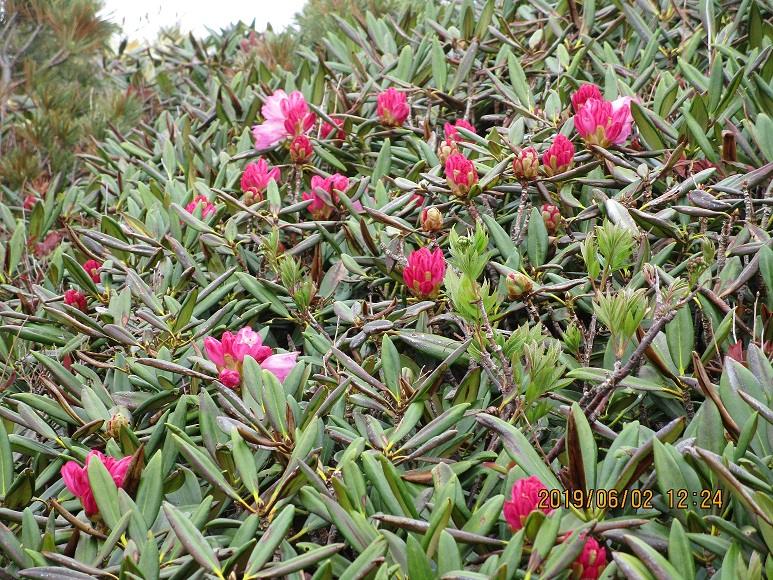 平標山近くまで石楠花と峰桜の群落が続き、仙ノ倉山手前も同様の見事さ、こちらは、石楠花の真紅の蕾が見事でした。