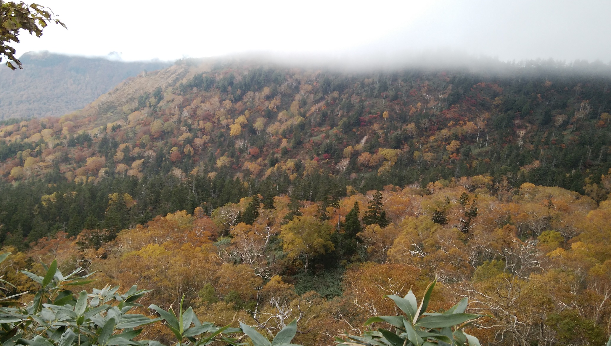 秋色に染まったダケカンバが広がる景色に魅せられて、時々足を止めた。3合目下山は、17時を少し回っていた。