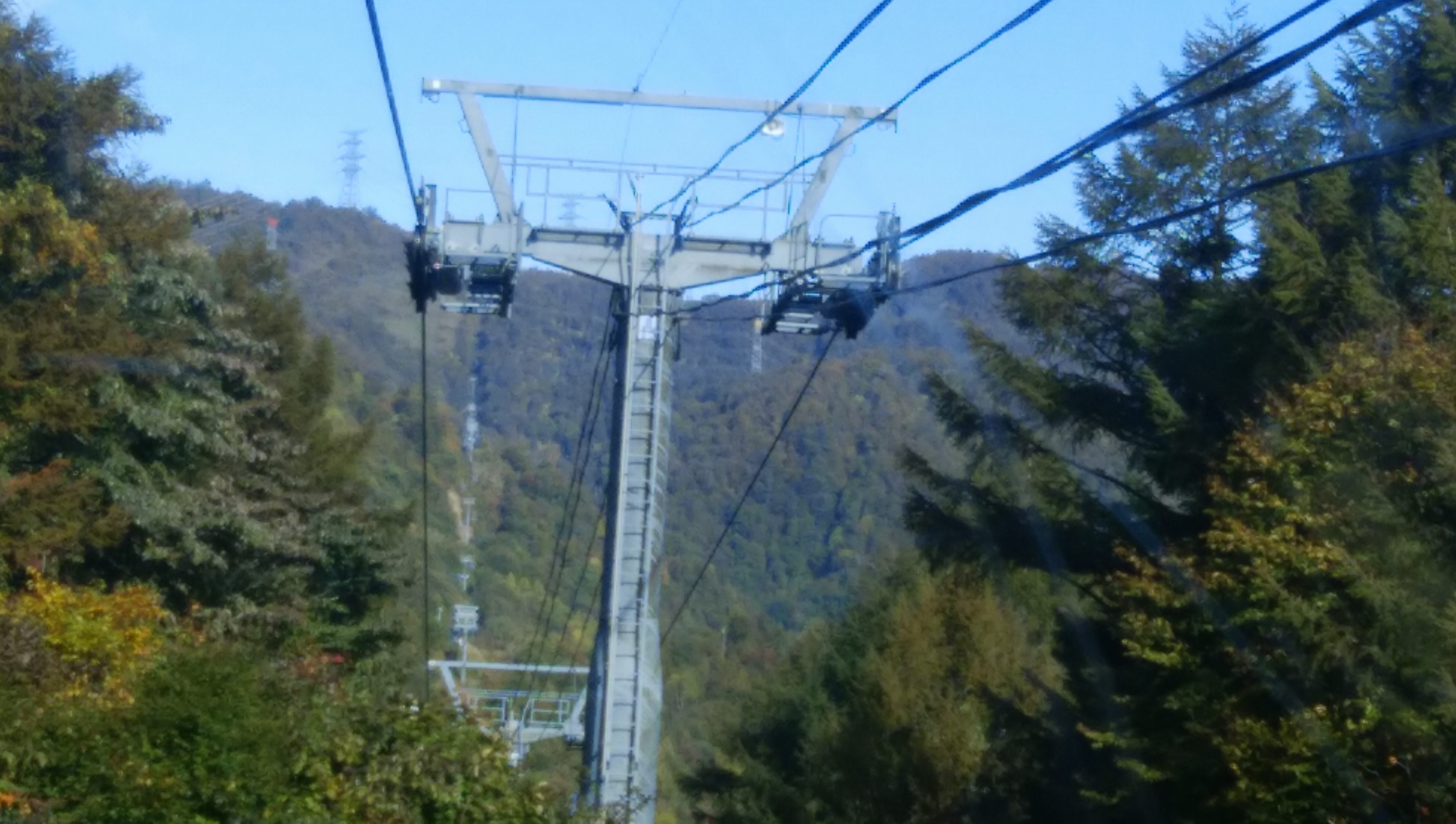 ドラゴンドラからの景色は、紅葉には少し早かったが約25分間の谷を下り山を越え、アップダウンのある空中散歩はなかなか楽しい。