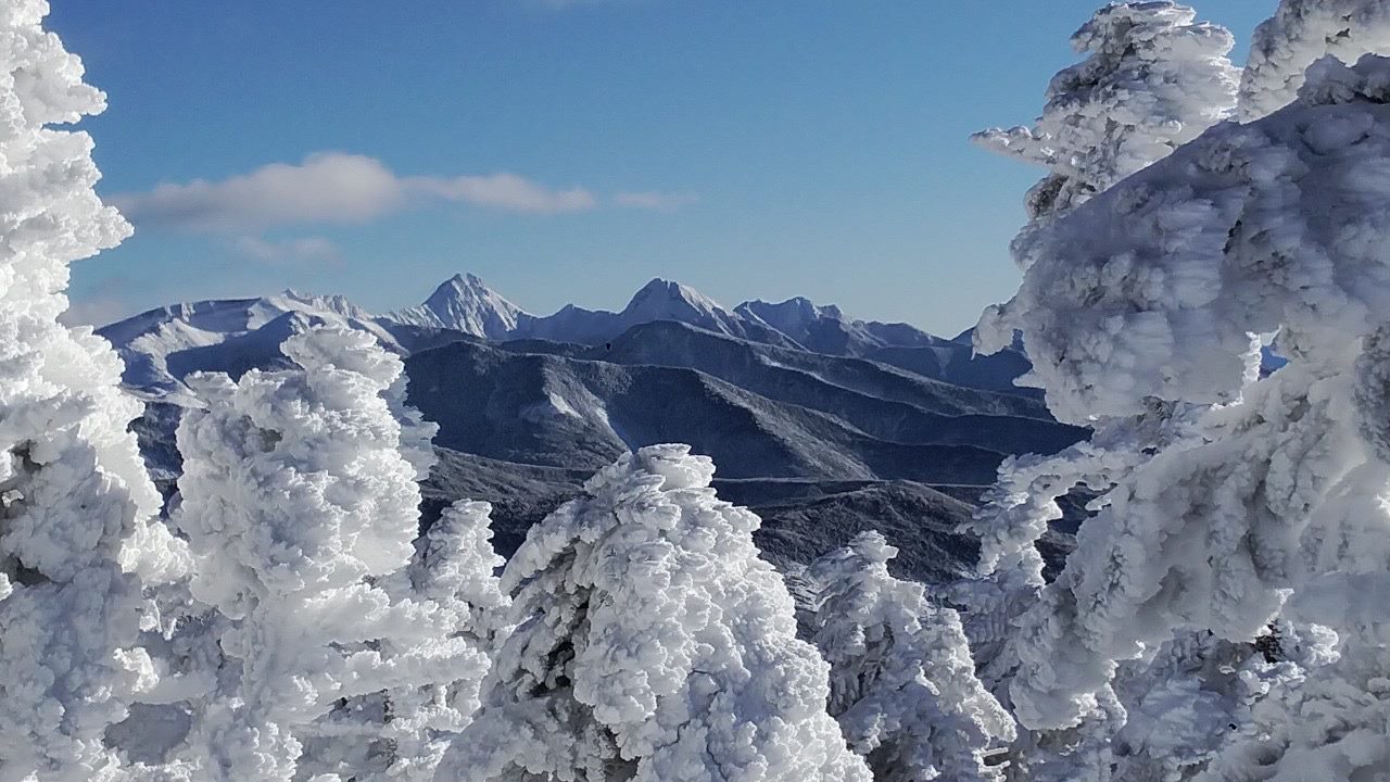 北横岳周辺の山々はほとんどがシラビソ(コメツガはわずか)、雪で覆われたシラビソの木々が立ち並んぶ景色は美しい。
