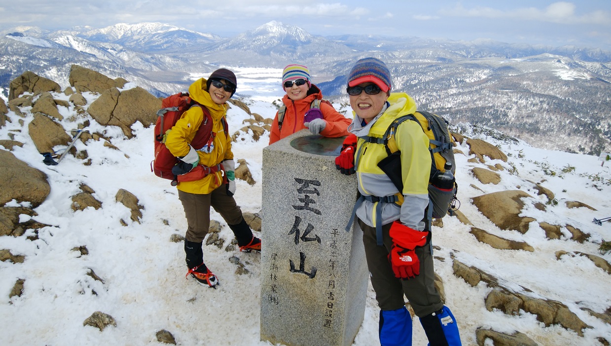 風がなく穏やか、山頂は私たちだけ(みんな下山した後)。谷川岳、越後三山など周辺の山々を眺め楽しんだ。