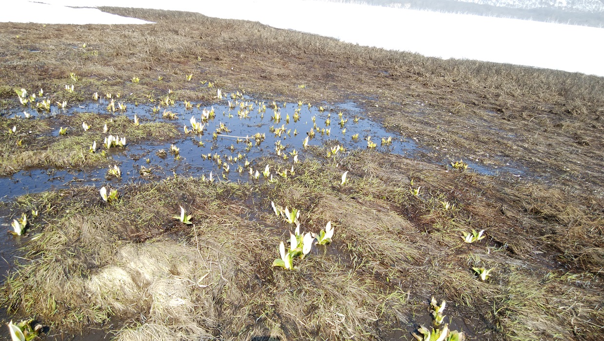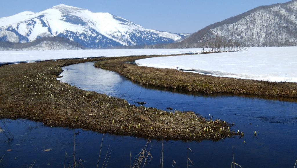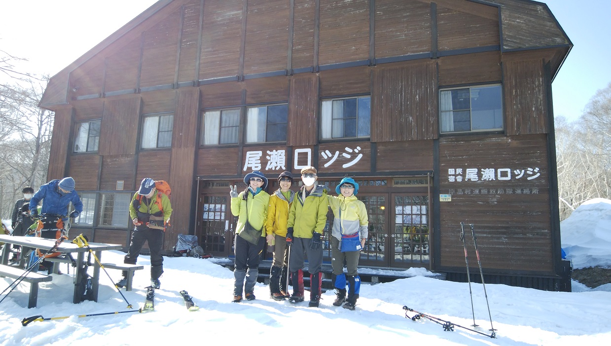 山の鼻への下りは木道が長く、アイゼンを付けているので慎重に、その後は尻セード。宿は尾瀬ロッジ。食事も美味しく快適でした。