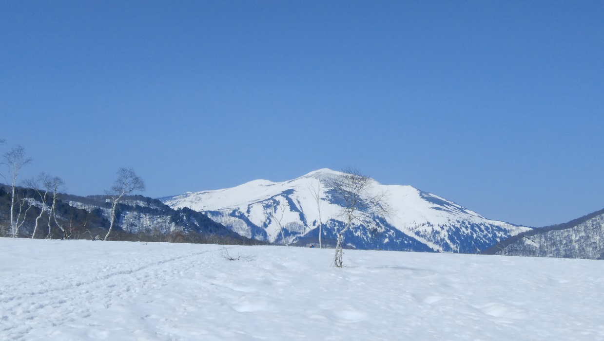 天気は薄雲はあるものの概ね晴れ。山の鼻泊の予定なのでゆっくりスタート。締まり雪で歩きやすい。緩やかな登りが続く。