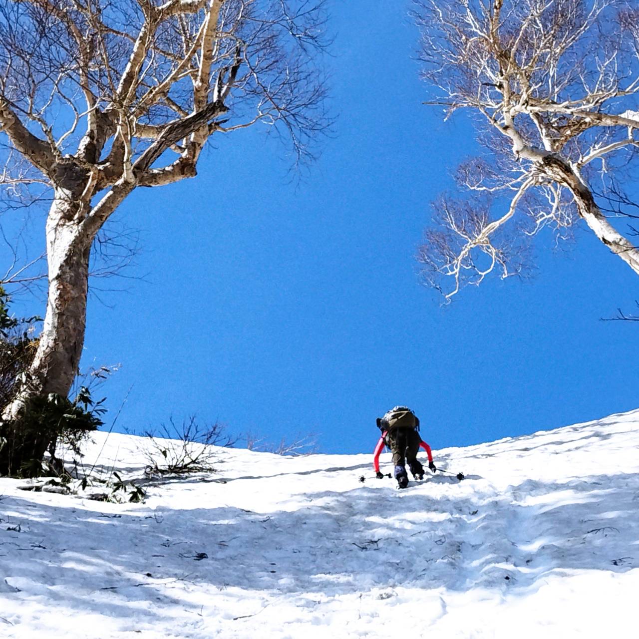 かんば平に到着後、時間があるので山頂を目指すことにした。装備はストックと6本アイゼン
