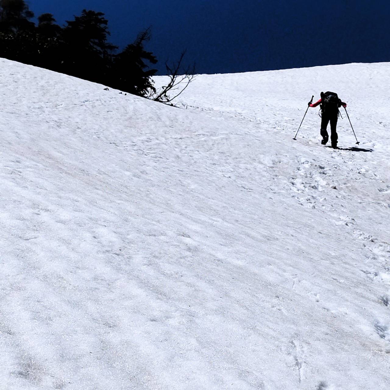 今年は雪解けが早いという情報だったので、2016年5月14,15日の時の様に踏み抜いて歩きづらい状態を予想していたが、夏道は出ておらず歩きやすい。