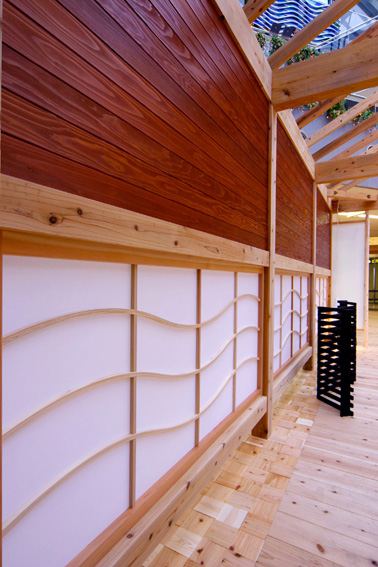 制作者の丹精込めた仕事のおかげで、美しいスギ材の壁を目にすることができます。